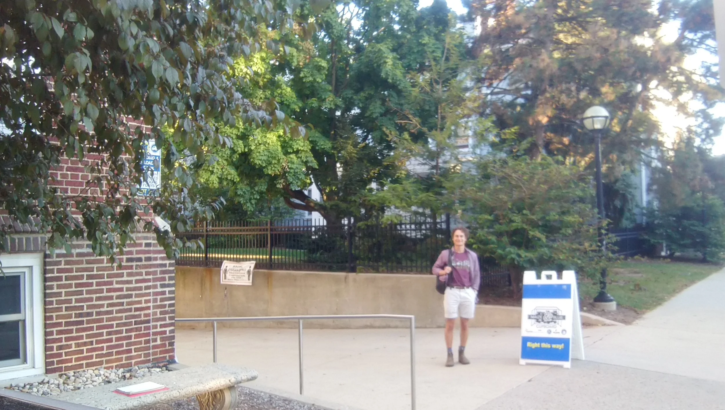 Me, standing by the sandwich board for the Maize & Blue Cupboard.