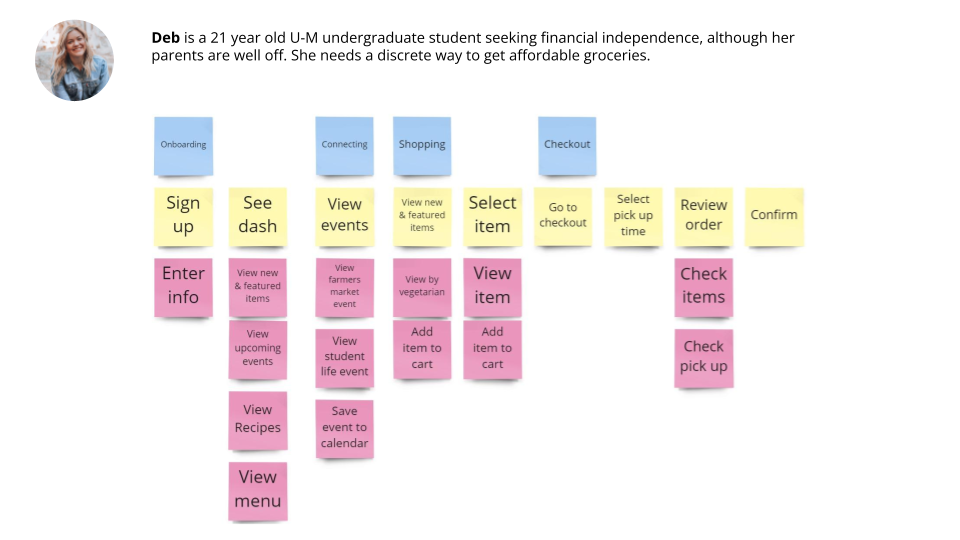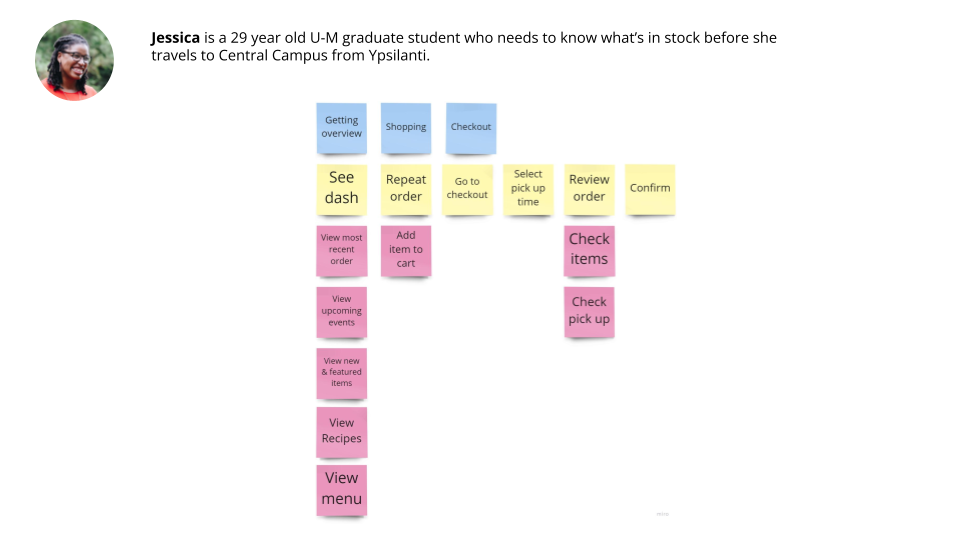 The feedback I got was “Jessica is very similar to the first and second story mapping.” That was a great point. I started to wonder: was my app generic? Did it genuinely respond to users’ needs? Users needed fresh produce, bread on the shelves, help managing random drop-offs. My features in this first round were not built for that. They were just what I had seen from competitors. I started to realize I was just scraping the surface and could go much deeper.