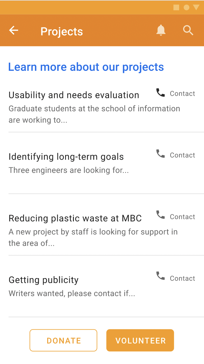 I learned a lot about minimal functionality. I aimed for that here, but I also didn’t get the opportunity—within the scope, being new to Adobe XD—to do things I really wanted like data visualizations, leaderboards, badges, and other gamified elements for the Donate, Volunteer, and Projects sections. Given the chance, I would love to deck those out.